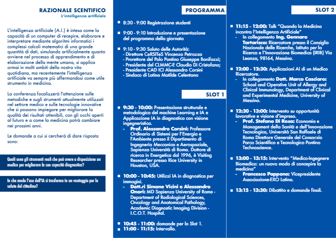 Convegno: L’INTELLIGENZA ARTIFICIALE IN AMBITO SANITARIO
